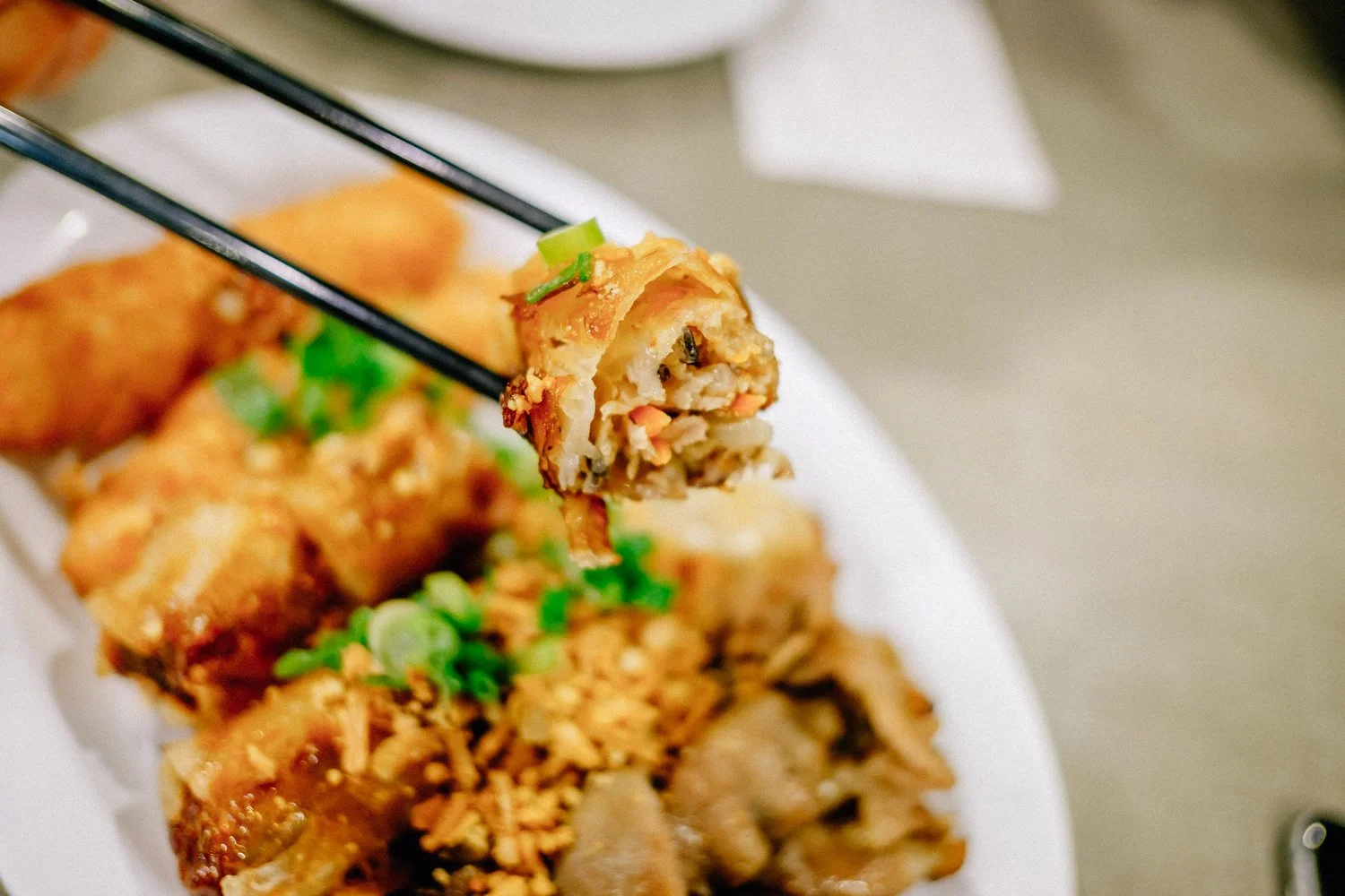 One of the dishes Golden Deli is probably most well known for is their phở. We usually order one phở with rib eye, brisket, tendon and tripe (phở đặc biệt) and one phở with rare sliced beef (phở tái). Their broth is just how broth should look and taste: rich in flavor from beef bones simmered for hours on end, clear, fragrant, fresh and void of the MSG ridden phở flavored powder so many Vietnamese restaurants use to enhance the flavor of the broth. The noodles are also cooked perfectly al dente. There’s nothing worse than overcooked, soggy noodles in a bowl of phở. Their sliced rare meat, or tái, is very high quality and not the unpleasantly chewy kind we are sometimes regrettably served at lower quality Vietnamese restaurants. If you so desire, you can add some sriracha and hoisin, or opt out. Golden Deli’s broth is delicious enough to stand alone without any extra flavor.